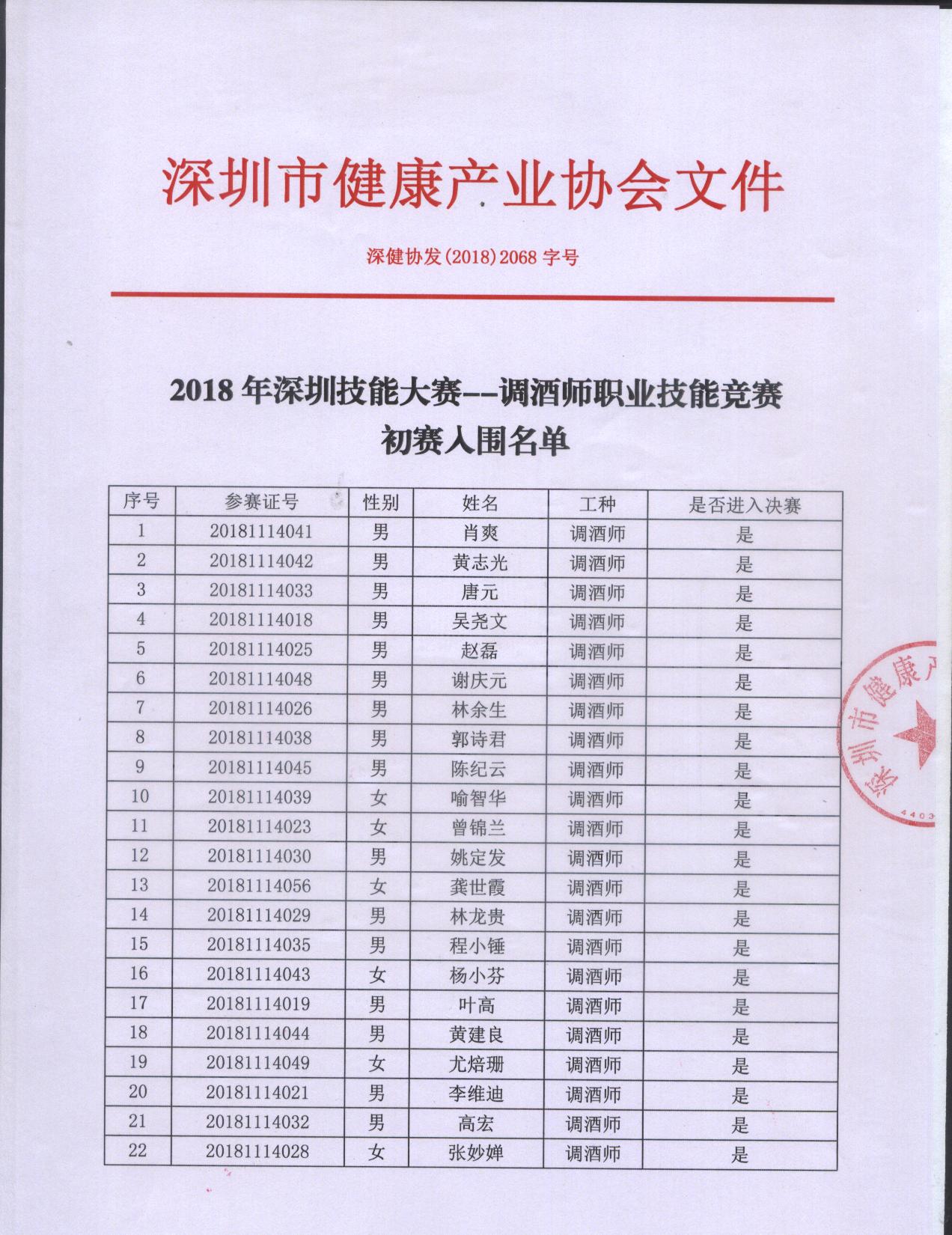 (最新)2018年深圳市調酒師大賽決賽入圍公示