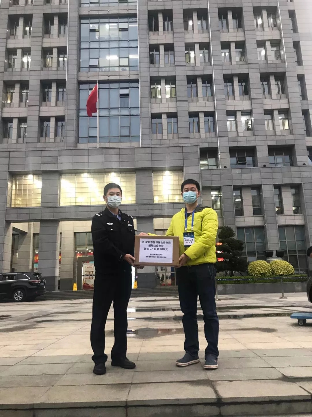 災難無情,人間有愛。面對復雜多變的疫情,深圳市健康產業協會為疫情防控攻堅助力,彰顯出大愛情懷。2月13日下午,深圳市健康產業協會會長黃爾程、副會長黃宗輝組織捐贈活動,向深圳市鹽田區公安分局贈送1000只國標LA口罩,為堅守一線執勤民警提供一道安全的防護。