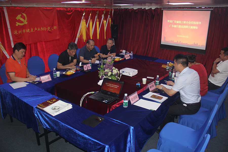 2019年8月13日下午,2019年廣東省職業技能大賽籌備工作會議在深圳市健康產業協會會議室召開。深圳市健康產業協會會長黃爾程,深圳市健康產業協會副秘書長孫慧、張景宣、劉 ,深圳市健康產業協會品鑒專業委員會鐘彬、陳勇勝、古偉炬,廣東省輕工聯合會秘書長黃 、陳祖安主任等。會議重點圍繞大賽籌備進展情況、下一步賽事安排等方面展開。會議由協會品鑒專業委員會秘書長古偉炬主持。